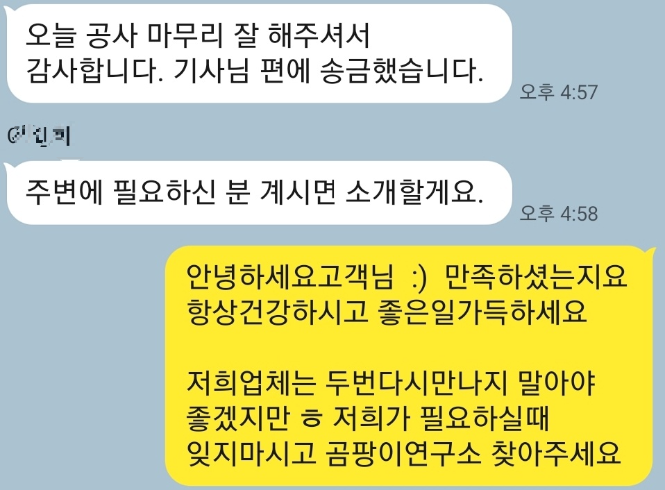 시공이 끝난 후, 고객님께서는